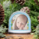 Célébrez un 1er Noël magique avec ce charmant Dome Snow Globe! Ajoutez votre photo préférée à l'avant, et personnalisez le dos avec un nom et l'année. Avec des étoiles jaunes et des couleurs festives bleu et vert. Il s’agit d’un doux souvenir qui capte la joie des vacances et le grand jalon du bébé. Parfait pour les cadeaux. Un globe de neige photo sur mesure, le premier cadeau de Noël du bébé et un décor de vacances personnalisé - le tout dans un design adorable.
