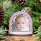 Célébrez un 1er Noël magique avec ce charmant Dome Snow Globe! Ajoutez votre photo préférée à l'avant, et personnalisez le dos avec un nom et l'année. Avec des étoiles jaunes et des couleurs festives rose et vert. Il s’agit d’un doux souvenir qui capte la joie des vacances et le grand jalon du bébé. Parfait pour les cadeaux. Un globe de neige photo sur mesure, le premier cadeau de Noël du bébé et un décor de vacances personnalisé - le tout dans un design adorable.