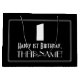 This vintage style 1920s-1930s look inspired birthday-themed gift bag design features a large art deco style inspired number "1", the message "Happy 1st Birthday,", a personalized name, and a border pattern consisting of thin lines. The background is coloured black. A gift bag like this could be used when wrapping a birthday present or gift being given to somebody who is celebrating their 1st birthday. [~Z0000495]
