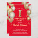 1st Birthday Black and Red Glitter Balloons Invitation