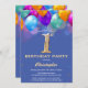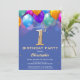1st Birthday Blue and Gold Colourful Balloons Invitation