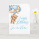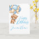 1st birthday cute teddy balloon boy card