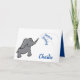 The outside of the card shows an image of an illustrated elephant blowing water in celebration.