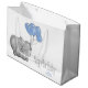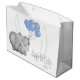 Personalized 1st birthday gift bag with illustrated elephant carrying blue balloons design.