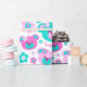Fun pastel shades of pink and aqua blue green wrapping gift paper. Bright children's first birthday teddy bear faces and graphic flowers repeat pattern wrapping paper, perfect for a girls 1st Birthday. Personalize with your own little girls name, currently reads Sophia 1. Graphic uniquely designed by Sarah Trett.
