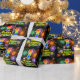 This exciting and joyful birthday-themed wrapping paper design features a large number “1” having a colourful rainbow spectrum gradient inspired pattern. It also features the message “Happy 1st Birthday,”, and a personalized name. The background features a multicolored bursting celebratory fireworks inspired pattern. Wrapping paper like this might be a fun way of wrapping a birthday present or gift being given to somebody who is celebrating their 1st birthday. [~Z0000587]