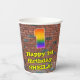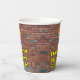 This vibrant and fun urban graffiti and street art themed birthday paper cup design features a large number “1” with a colourful rainbow spectrum gradient inspired pattern, along with the message “Happy 1st Birthday,”, and a personalized name. The background has a brick wall pattern. Colourful, vibrant paper cups like this might be fun to use at a birthday party/celebration being held to honour somebody’s 1st birthday. [~Z0000543]