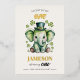 1st Birthday Invitation | Foil St. Patrick's Card featuring a cute baby elephant design. Celebrate your little one's first birthday with this charming Irish-themed party invitation. Our lucky baby elephant, adorned with shamrocks, brings a touch of magic to this milestone. Perfect for a St. Patrick's Day birthday party, this card sets a festive and adorable tone. Personalize all the text, including the date, time, and party details, with just a few clicks. From our "St. Patrick's Day Lucky Birthday Party Invitations" collection. Designed for easy customization and instant digital download upon purchase.