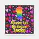 This colourful and joyful birthday paper napkin design features a large number “1” having a rainbow spectrum gradient inspired pattern. It also features the message “Happy 1st Birthday,”, and a personalized name. The background features a pattern of red, pink, and purple heart shapes of various sizes. Loving, friendly paper napkins like this might be fun to have at a birthday celebration being held in celebration of somebody’s first birthday. [~Z0000550]