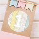 1st Birthday Mint & Yellow Rustic Wood Geometric Classic Round Sticker