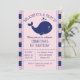 1st Birthday Nautical Blue Whale Pink Blue Stripes Invitation