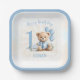 1st Birthday Number Bear Blue Square Paper Plates
