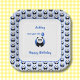 A birthday plate for a one year old. The text is fully editable: Name, caption, greeting. The design features a smiling panda with a blue balloon which has the figure 1 on it. A further pattern of pandas on a light blue background adorns the edge of the plate.