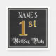 This fancy and opulent birthday paper napkin design features an editable name and the message “1st Birthday Party”. The large number “1st” has an imitation/faux gold-inspired colouring pattern, and the words “Birthday Party” are in elegant script-style text. The background is coloured black by default (although it can be customized). Luxurious, elegant paper napkins like this might be used at a birthday celebration being held in celebration of somebody’s first birthday. [~Z0000565]