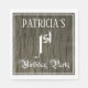 This ornate and fancy birthday party themed paper napkin design features a personalized name and the message “1st Birthday Party”. The large number “1st” and the words “Birthday Party” are in elegant script-style text, and the background has an imitation/faux woodgrain-inspired pattern. Elaborate, elegant paper napkins like this might be useful at a birthday celebration/party being held to celebrate somebody’s first birthday. [~Z0000564]