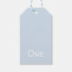 Baby's first birthday. Pastel blue 1st birthday gift bag with 'One' white typography. Perfect for a baby's gift and boho themes. Beautiful, soft pastel shade. 1st Birthday Pastel Blue Gift Tag.