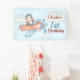 Celebrate your baby's 1st birthday in style with this cute baby penguin first birthday banner, featuring a watercolor baby penguin piloting an cartoon airplane / aeroplane with a pale blue sky background and big fluffy clouds. Personalize with the child's name, and birthday age. Great to decor that party wall. Gender neutral and good for any age but especially for 1st , 2nd or 3rd ( first, second, third) birthday. Matching Party items available in Suziigifts.