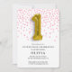 1st Birthday Pink Confetti and Gold Balloon Invitation