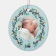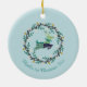 1st Christmas Deer with Wreath Teal Customize Ceramic Ornament