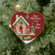 For the First Christmas in a New Home, this gorgeous heart shaped ceramic ornament would make a beautiful keepsake gift to yourself or a friend. A single tiny robin is peeping out of the window of a festively decorated birdhouse which sits against a rich red tartan background. The back of the ornament features white snow over the red tartan pattern, and the caption 'Home is where the HEART is'. Both sides of this adorable ornament can be personalized.