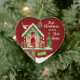 The First Christmas in a New Home is special. Mark the occasion with this gorgeous heart shaped ceramic ornament or give as a beautiful keepsake gift. Perfect for a couple, family and especially newlyweds, this adorable ornament features a tiny robin peeping out of the window of a festively decorated birdhouse. His eyes are fixed on a second robin perched on the roof. The cute little birdhouse with its tiny Christmas tree is set against a rich red tartan background. The back of the ornament has the same red tartan pattern, with the caption 'Home is where the HEART is'. Both sides of this adorable ornament can be personalized and fonts can be adjusted to suit your name.