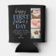 First fathers day can cooler featuring the message "happy first father's day", a modern saying that reads "some men are born father's, and that someone is you!", with a cute blue heart, and your childs name. Plus 6 family photos for you to customize with your own to make this an extra special dad gift.
