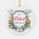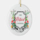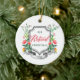 1st Retired Christmas Personalized Floral Greenery Ceramic Ornament. Personalize with your custom information on both front and back.