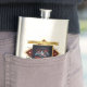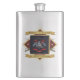 The product is a good size and came exactly as it was pictured. The lid is not attached to the flask, which could be dangerous on drunken nights... The print came out surprisingly well and looks very sharp. Would definitely recommend.