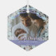 Fancy purple hue personalized photo ornament to display your own special memory of your new baby. The snowflakes and ribbon in soft blue and purple colour encircles the photo, creates a dreamlike atmosphere. The word "Our First Christmas" is designed in a beautiful handwritten white script style and with a shadow so that it will be displayed clearly on either light or dark background. Easily place your own memorable photo in place of the template photo as well as the year to make your own ones and send them to your friends and family. What a fantastic way to celebrate your first Christmas as baby's mommy and daddy!