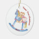 This adorable Twins First Christmas Ornament features cute boy/girl twins riding on a rocking horse.