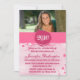 This graduation party invite has a pink grunge border and a circle with the year of the graduate printed in a white grungy font. The top of the 5x7 invite has a place for your to customize your personal photo. On the bottom half, you can easily personalize your party information. The text on the bottom is written in a hot pink grungy cool font.
