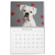 I have a white Boxer or should I say a white Boxer has me!!!! They are the cutiest dogs and with this calendar, every day when I look at the date and all, I smile when I see these precious little doggies. The calendar is a little smaller than I thought it would be, but that is O.K. It is easy to look at because the month showing the days is clear.