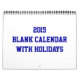 In 2015 Blank Calendar With Holidays with blue wire you can find blue customizable text on front page and holidays and events in U.S. and Canada.