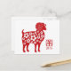 2015 Chinese New Year of the Goat with Floral Design Silhouette in Auspicious Red Isolated on White Background Postcard