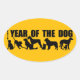 Silhouettes of some dogs on yellow oval sticker. The title "Year of the dog"(s) and 2018 are not customizable. Perfect for Chinese New Year of the Dog 2018.. ----- "The Dog (狗) is one of the 12-year cycle of animals which appear in the Chinese zodiac related to the Chinese calendar. The Year of the Dog is associated with the Earthly Branch symbol 戌. The character 狗 refers to the actual animal while 戌 refers to the zodiac animal." Wikipedia