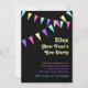 Multiple strands of colourful bunting flags, make this invitation bright and festive for the New Year's.