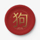 Golden Dog Symbol with an embossed digital effect on dark red background + 2018 on paper plate. You can easily change the Year (font, colour, size and position) by clicking the customize button. Matching paper napkin and more... Perfect for Chinese New Year of The Dog 2018 or Birthday (people born in Dog year). ---- "The Dog (狗) is one of the 12-year cycle of animals which appear in the Chinese zodiac related to the Chinese calendar. The Year of the Dog is associated with the Earthly Branch symbol 戌. The character 狗 refers to the actual animal while 戌 refers to the zodiac animal. (...) People born within these date ranges can be said to have been born in the "Year of the Dog", while also bearing the following elemental sign: