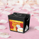 Take Out Favour Box with a lovely dog design in front and back (Shiba Inu in brown and white) with speech bubbles for your text (Here Happy New Year) + Wishes in Vietnamese (text image) on red fabric image and golden textured background + in lateral sides another puppy: with love + in other speech bubble: The Name Family. You can easily add and change text + background colour (here balck) by clicking the customize button. Available in gable moel. Matching gift bag, greeting card and more... Perfect for Vietnamese New Year of the Dog 2018 or birthday (people born in Dog Year).