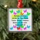 I was impressed by the quality and size of the ornament. Metal framing and design were perfect. Definitely recommend any of the metal framed ornaments. I ordered different ones all of the same quality and personalized professionally. Perfect No pictures as they were all gifts