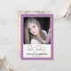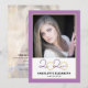 This modern graduation party invitation features a square photo on the front and a full vertical photo on the back. The colour theme is purple and gold with the graduating year of 2020 appearing in an elegant script.