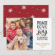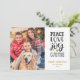 This stylish 2021 Christmas photo card features the typography Peace, Love, Joy, Christmas alongside your family photo. Personalize with your greeting and family name.