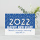Modern 2022 HAPPY NEW YEAR Holiday Card with Christian Scripture verse. Design shows shades of blue snowflake pattern against a DARK BLUE background. In the centre the text reads 2022 and HAPPY NEW YEAR in white typography. In the white panel underneath, the placeholder Bible verse from Isaiah 43:19 which says BEHOLD, I AM DOING A NEW THING. On the back, there is a message in script typography with a matching PALE BLUE background. All text is CUSTOMIZABLE, so you can create your own and personalize by replacing the Bible verse with your family, business or corporate name. Inside you can replace the placeholder greeting which your own wording.
