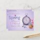 2022 Daylight Savings Time Change Reminder Postcard with Vintage Clock with Spring Bouquet of Flowers on a gradient background in shades of violet. On the Back personalize with your return address information and there is optional text to add more such at your newest promotion. Leave text box blank if not needed.