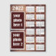 Make your own 2022 magnetic calendar for fridge with 2 custom photos and family name. Use the template to upload personal pictures and type the name. This modern Sunday through Saturday calendar with wood photo background design is perfect as a practical gift or a keepsake for the family, couples, grandparents, friends, workmates, and colleagues for Christmas, New Year, or any occasion. Have fun by making your unique photo gifts.