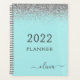 2022 Silver Aqua Blue Teal Glitter Monogram Planner