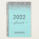 2022 Silver Teal Aqua Blue Glitter Monogram Girly Planner