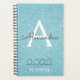 2022 Turquoise Bleu Aqua Paillettes Glitter Monogramme Nom et Initial Bloc-Notes Spirale Planificateur. C'est le cadeau parfait pour un anniversaire sweet 16, un mariage, une douche de mariée, un anniversaire de mariage, une baby shower ou une soirée d'enterrement de vie de jeune fille pour quelqu'un qui aime le luxe glamour et les styles chics.