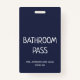 Classic White Script Navy Blue Simple Minimalist Back To School Bathroom Hall Pass Badge. Easy to customize. Get yours today!