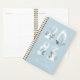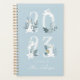 This cute 2023 planner features a white bunnies with winter floral and foliage on a blue background. The reverse side features a carolina blue background with botanical patterns. Personalize it for your needs.