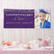 2023 Glitter Silver and Purple Graduation Class of custom name, photo, school, and year Graduation Party Banner. Customize this banner for the graduating senior with this elegant and modern scripted name banner.